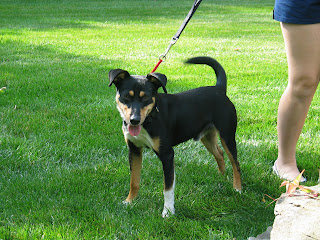 He’s a spaniel/terrier mix–that’s the shelter’s guess, anyway. We named him after one of our favorite New York Yankees, Phil Rizzuto. He looks like a mini-Rottweiler, and has a great personality. I’ve been using the tips and techniques I’ve seen on The Dog Whisperer, and he’s been responding beautifully. Cesar Millan definitely knows what he’s talking about!