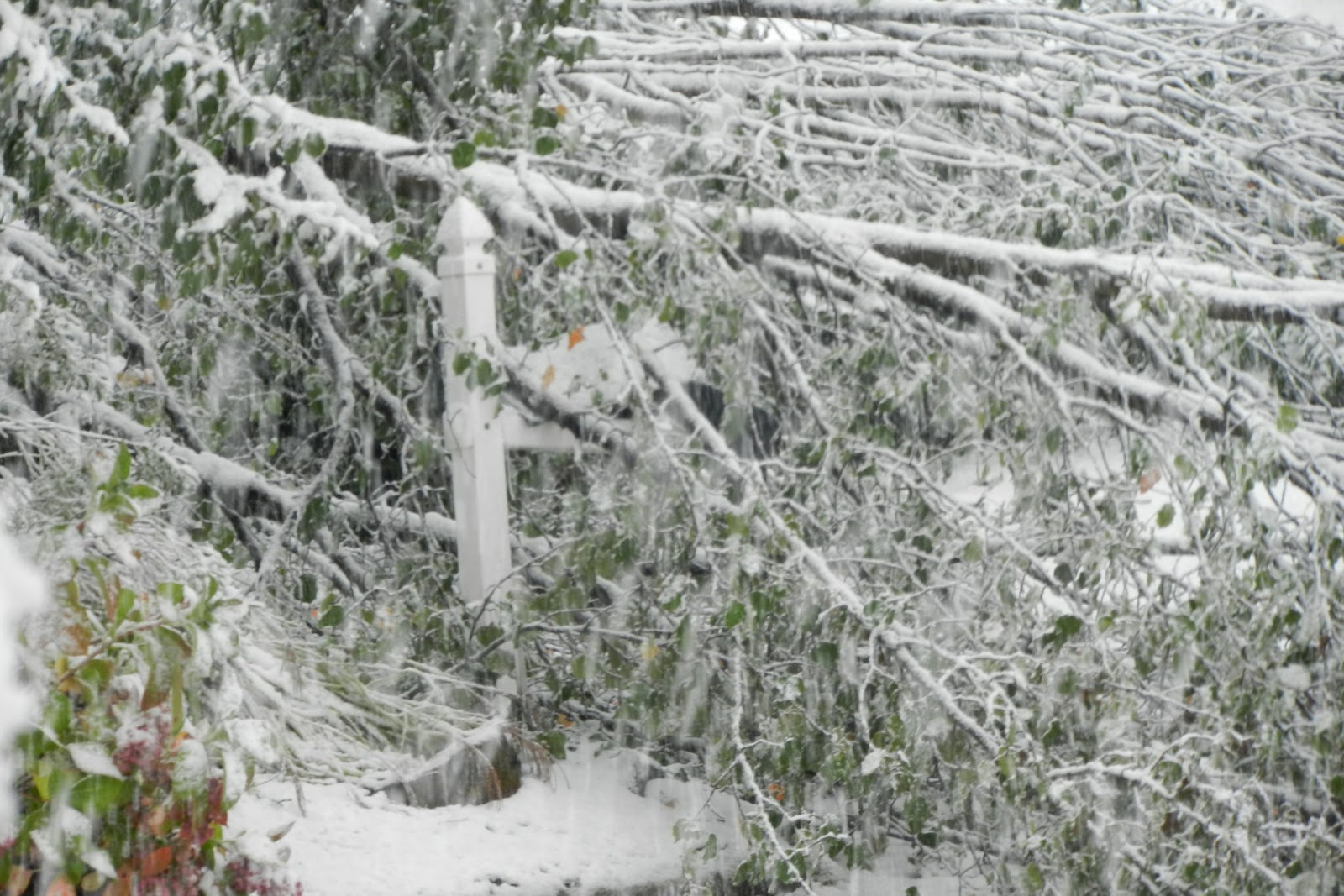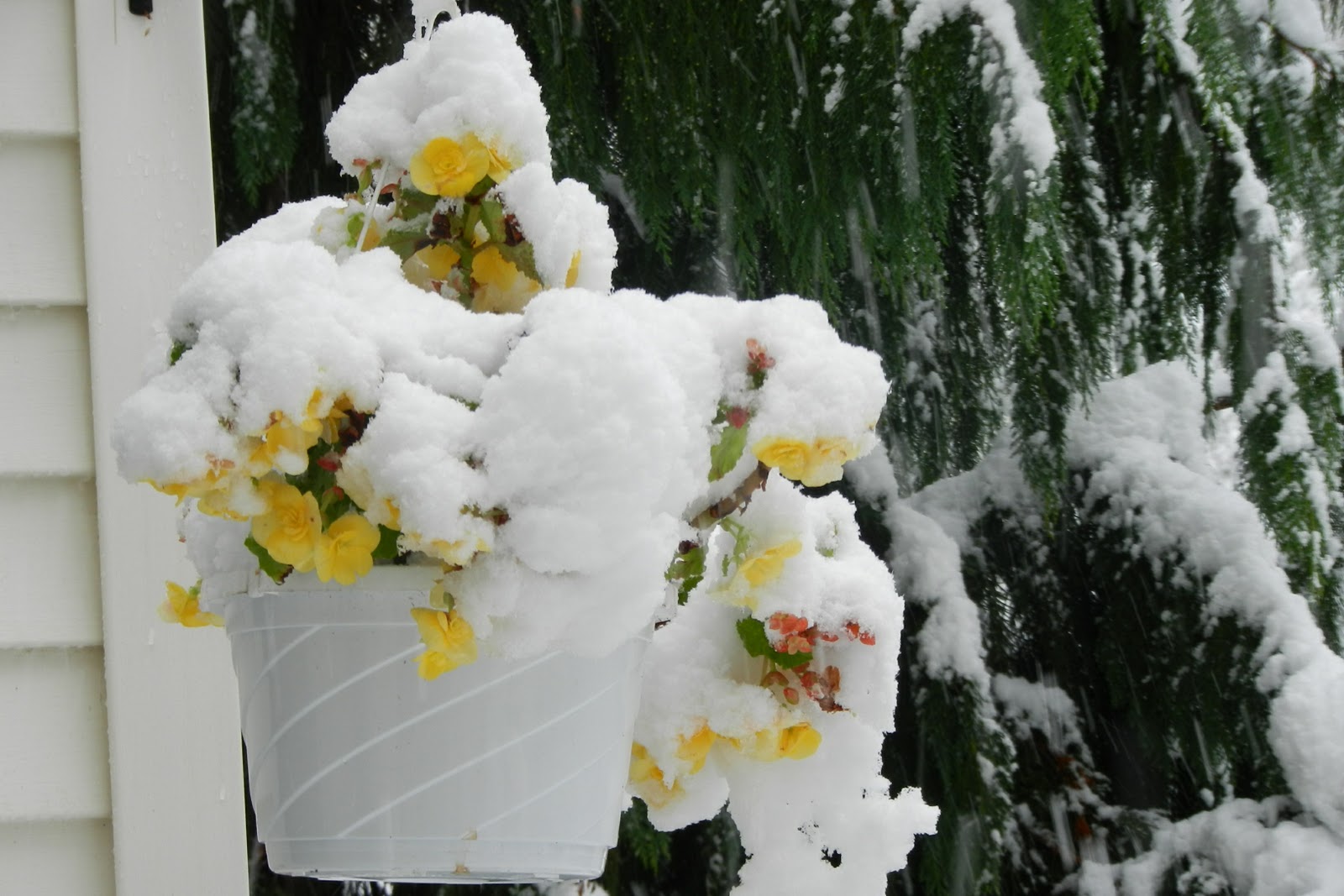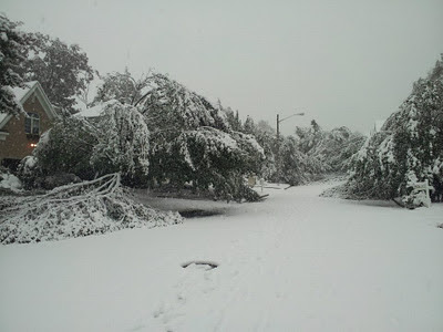 Early snowstorm here in the Northeast, and the trees and flowers in my neighborhood are NOT happy. We’ve lost power briefly a couple of times, so I’m posting this while I can. As I’m typing, I can hear loud “CRACK” sounds coming from outside…the trees on my street are dropping, one by one. My next door neighbor’s tree came down across our driveway just a few seconds after my husband pulled his car into the garage. He and his car are fine…our mailbox wasn’t quite as lucky.My mailbox, or what’s left of it. No bills for us, today!