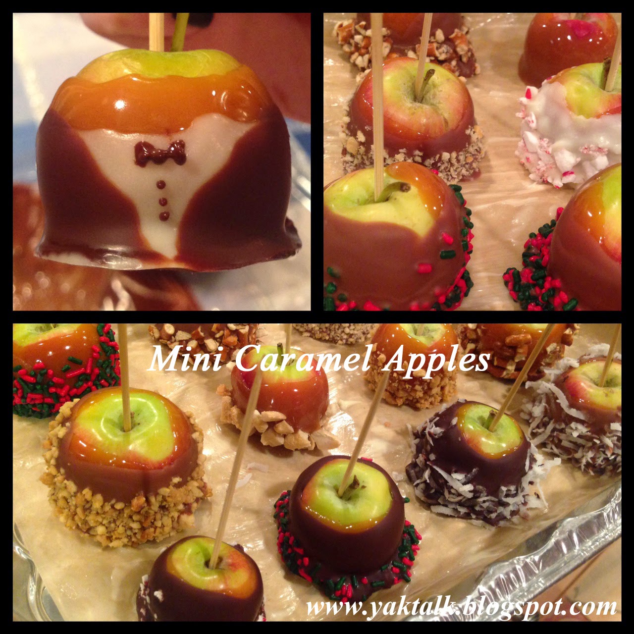 Mini-caramel apples, using crab apples and toothpicks! So cute and delicious.