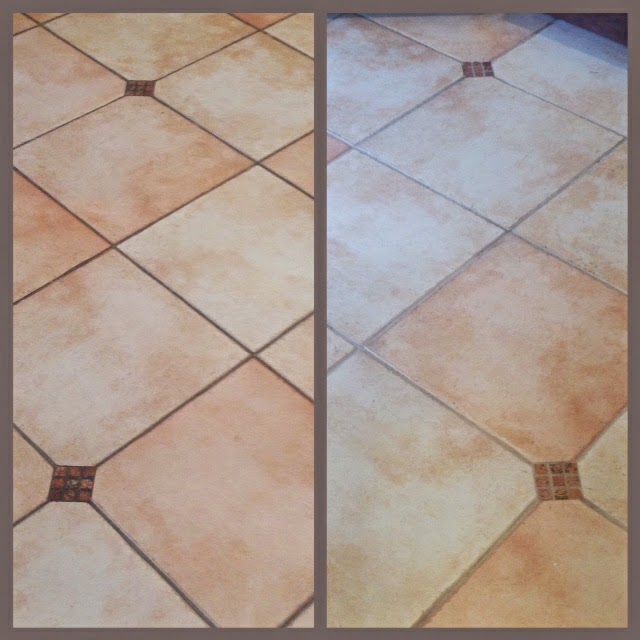 Here are the before and after photos, unretouched. The tiles in my kitchen are like brand new!