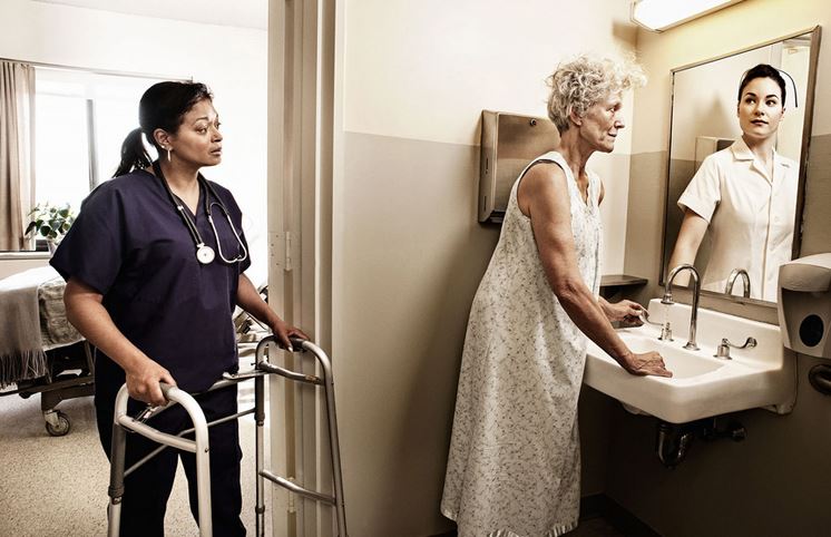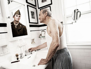 Hussey is a photographer who created images of elderly people looking at their own reflections, which have been superimposed with a photo of their much-younger self.