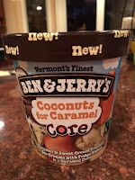Taste test: This is the one I was most excited to try, and it did not disappoint. The coconut ice cream has a ridiculous amount of coconut flakes in it. I happen to love coconut, so there’s no such thing as “too much”of it, but I could see where someone who is less coconut-obsessed might find it a tad overdone. To which I say: good, don’t buy this, so there’s more for me! The caramel ice cream also had a pleasing caramel flavor without being overpowering, and the caramel core was gooey, buttery perfection.