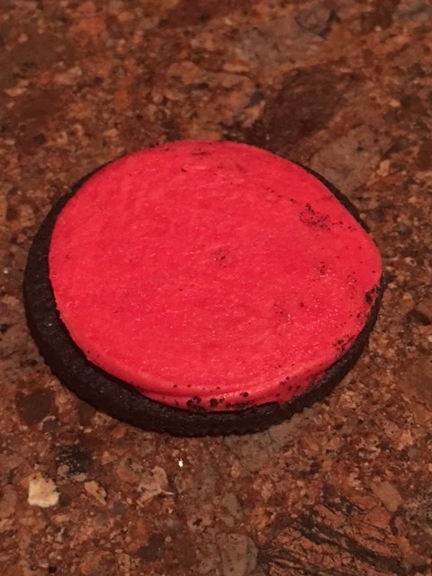 The Swedish Fish Oreos are, by far, the worst Limited Edition flavor I have ever come across. If I had to describe them in one word, it would be HEINOUS. They have a metallic quality and a medicinal aftertaste that made me want to spit out the bite I took. Somehow, I got the first one down, but when I tried to give it a second chance, I just couldn’t do it–there was no way I could ingest this stuff. Yes, it was THAT BAD.