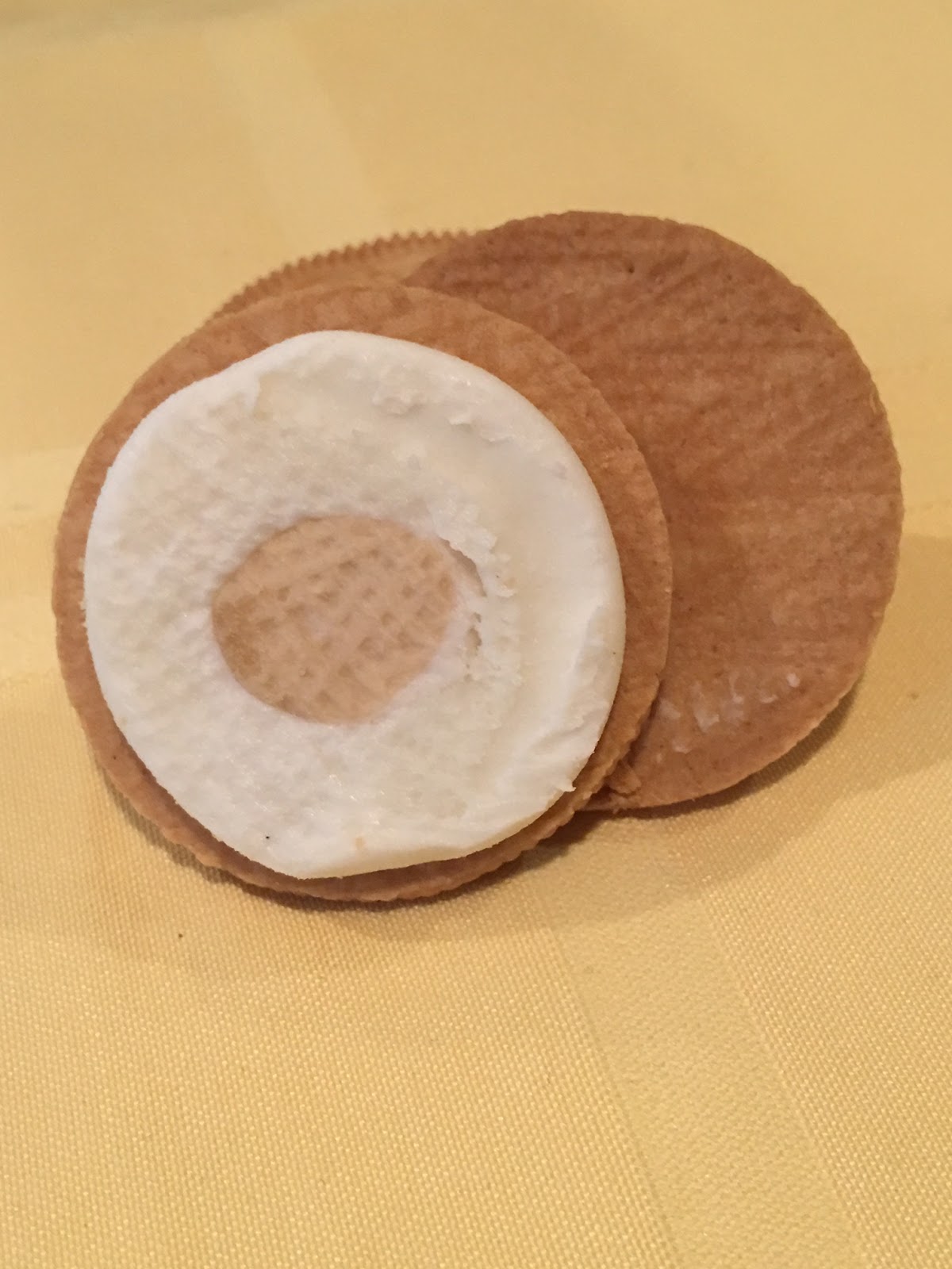 Unfortunately, they really missed the mark on the creme filling. Instead of using the maple flavoring throughout the creme, they had just a small dollop of light brown maple creme surrounded by plain white creme, which completely overwhelms the too-subtle maple flavor. They should have used the maple creme throughout the entire cookie.