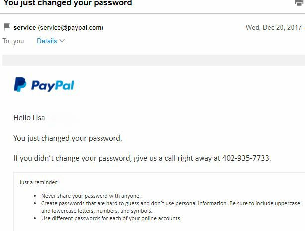 — The email came from a PayPal.com account, after I went directly to PayPal.com and initiated a password change (by sending a code to my phone, not via email).