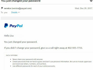 Today I received a spam email from a scammer pretending to be PayPal. I’ve gotten lots of phishing emails in the last few weeks, but those were easy to spot because they were warnings about bank accounts for banks that I do not frequent, or credit cards that I do not own.