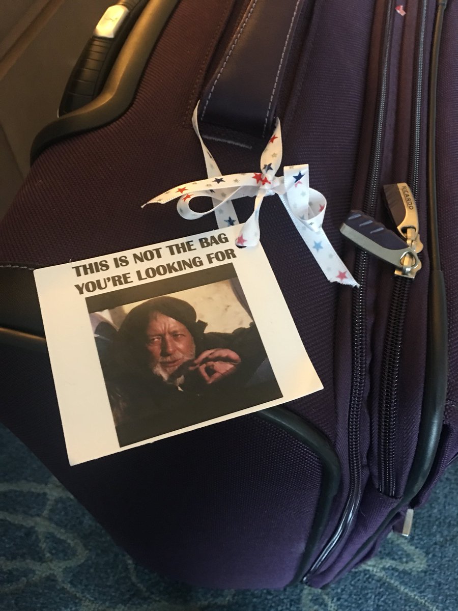 Several years ago, I started using a homemade luggage tag to keep other travelers from grabbing my bag off of the carousel at baggage claim. It’s a photo of Alec Guinness as Jedi Master Obi-wan Kenobi, using the Force to get people to back off because “This is Not the Bag You’re Looking For.”