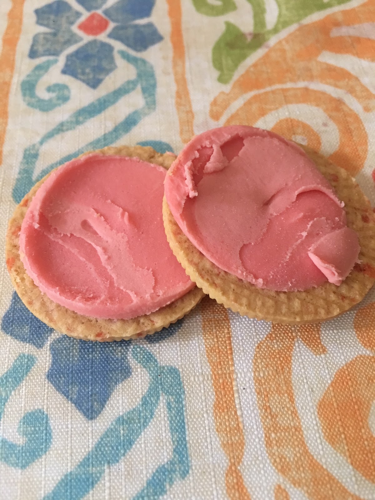 If I had to find something to criticize, it would be the color of the creme center: it is a disturbingly bright pink–we’re talking the EXACT shade of Pepto-Bismol, the “upset stomach and diarrhea” medicine. Nevertheless, the flavors more than make up for the unfortunately color comparison.